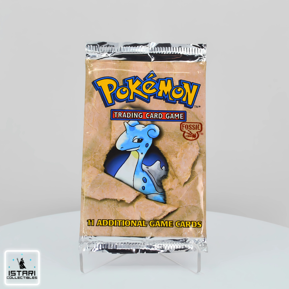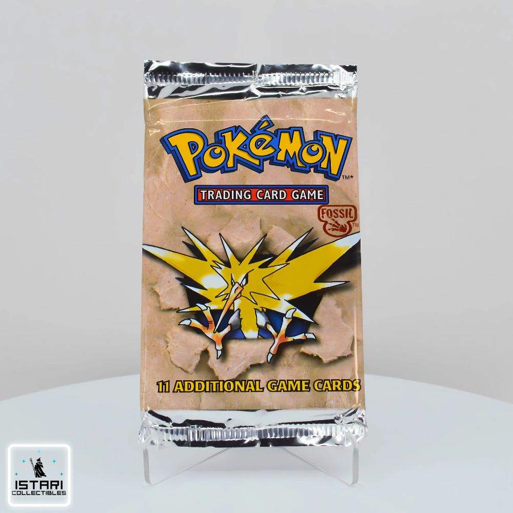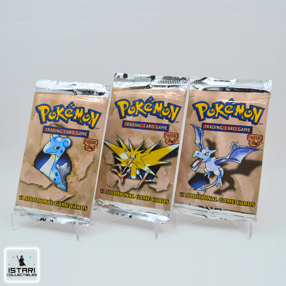Elevate your Pokemon collection with the iconic Fossil (Unlimited) Booster Pack - Complete Art Set. Fossil was the third main expansion set of the Pokemon Trading Card game released into the Western market in October, 1999 by Wizards of the Coast. Fossil used the starlight holofoil pattern for it's 15 holofoil cards (the same as Base Set & Jungle) which includes big hitters such as Dragonite, Gengar and the Legendary Birds. The Fossil complete art set features Zapdos, Lapras and Aerodactyl - each pack is factory sealed, unweighed and contains 11 cards with the fossil symbol stamped on the middle-right hand side. It is a valuable addition to any collector's inventory, offering a piece of Pokemon history in its original form.