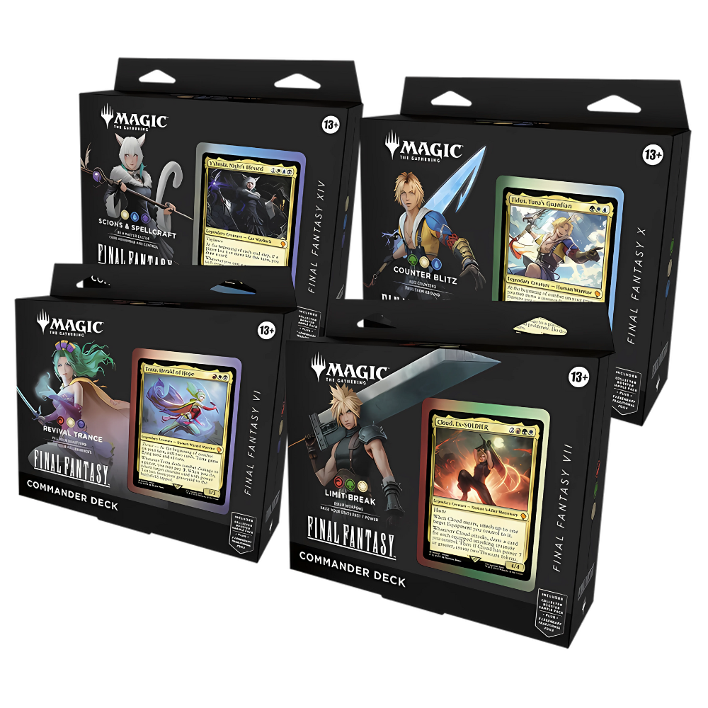 This bundle includes all 4 decks, with Final Fantasy VI: Revival Trance, Final Fantasy VII: Limit Break, Final Fantasy X: Counter Blitz, and Final Fantasy XIV: Scions & Spellcraft