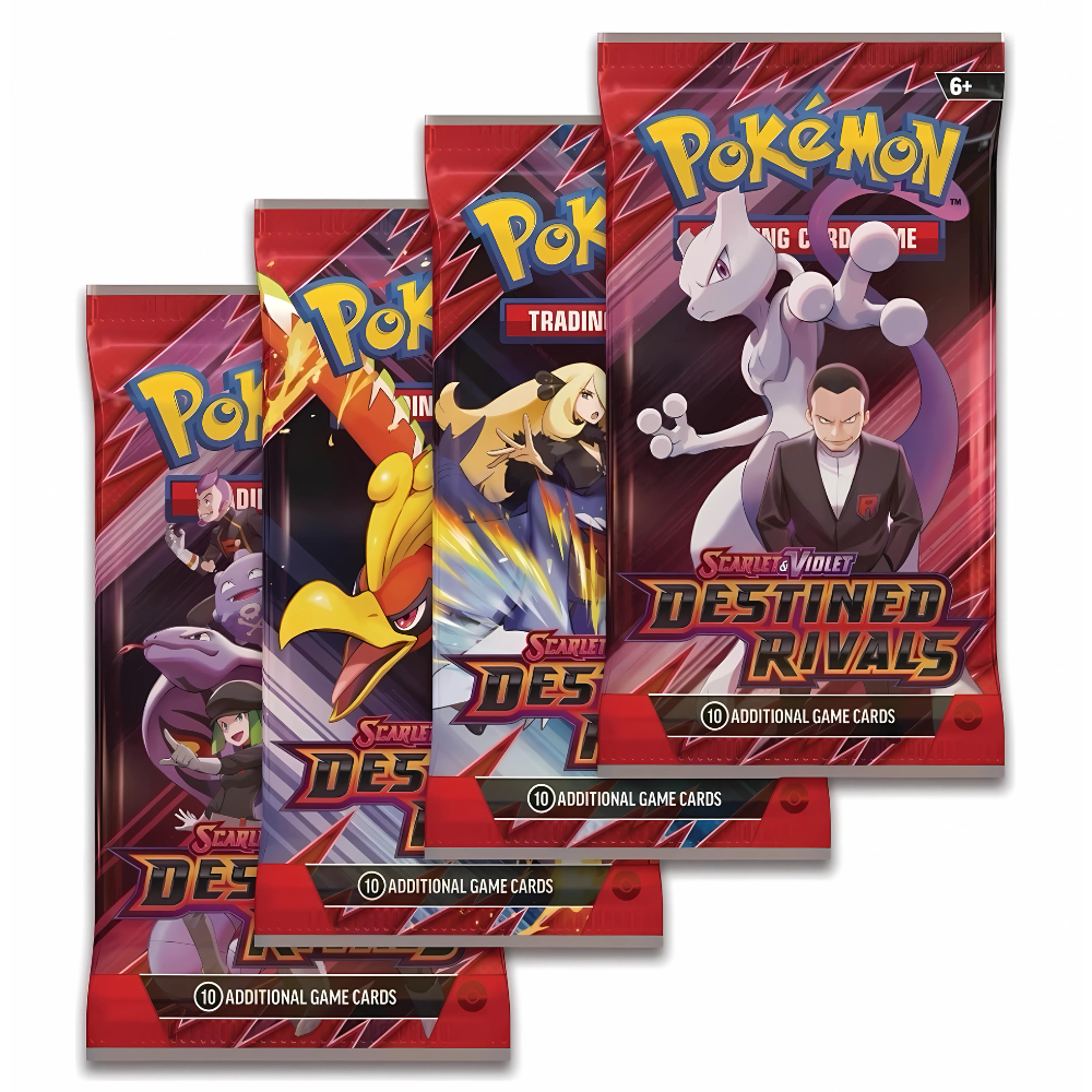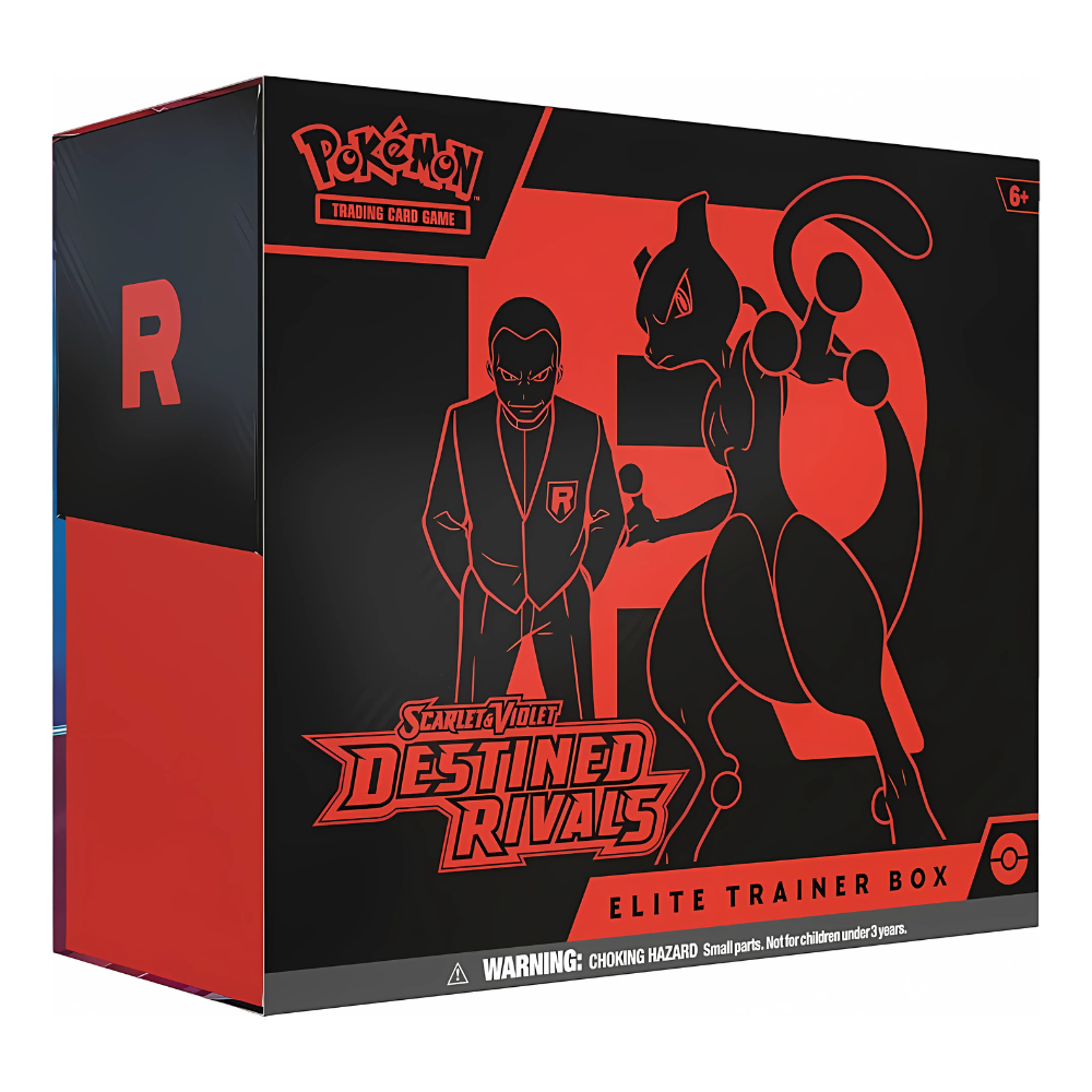 Pokémon Trainers, be on high alert! The nefarious Team Rocket is setting its latest plan into motion, and heroic Trainers are racing to stop it. Join forces with the likes of Cynthia and Garchomp ex, Ethan and Ho-Oh ex, or Arven and Mabosstiff ex… Or reconsider your loyalties and fight alongside Team Rocket’s Pokémon like Mewtwo ex—under the command of Giovanni! Choose a side, assemble your allies, and battle boldly in the Pokémon TCG: Scarlet & Violet—Destined Rivals expansion!