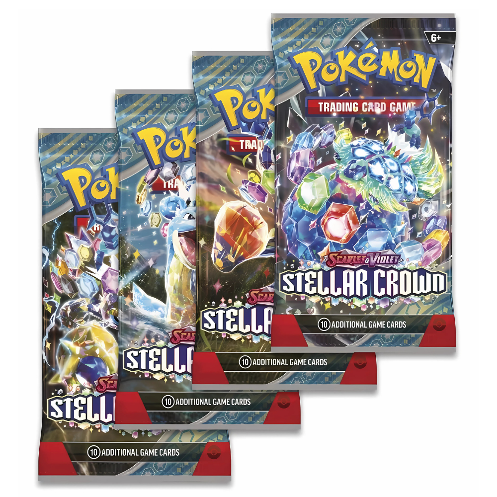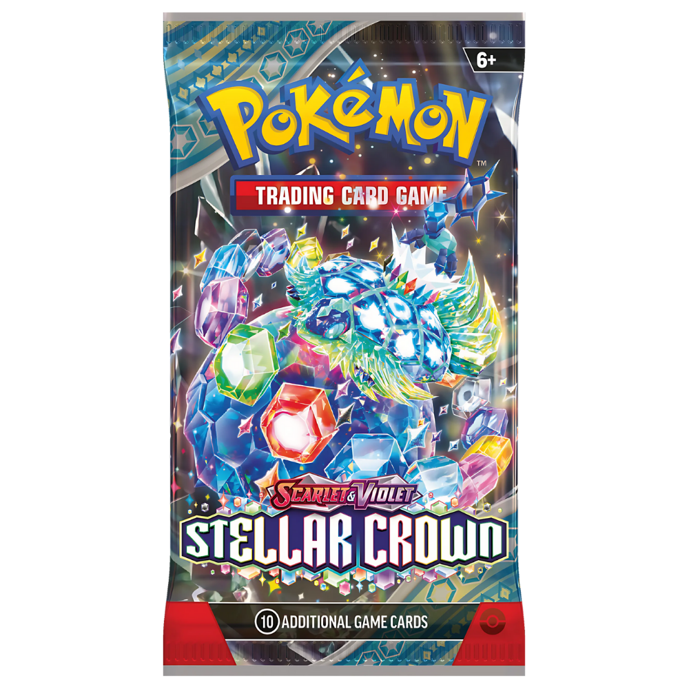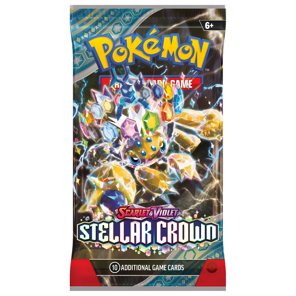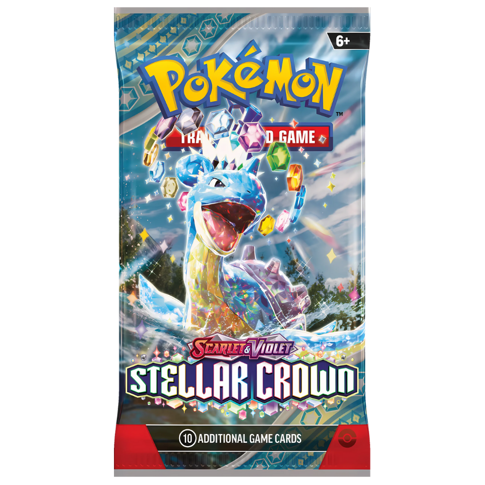 Descend into a world below the surface and discover the true potential of the Terastal phenomenon! The Legendary Pokémon Terapagos takes the throne, joined by Cinderace ex, Lapras ex, and Galvantula ex, all wielding brilliant new powers as Stellar Tera Pokémon ex. The newly discovered Hydrapple ex leads even more Pokémon ex into battle, and ACE SPEC cards continue to shake up the game in the Pokémon TCG: Scarlet & Violet—Stellar Crown expansion!