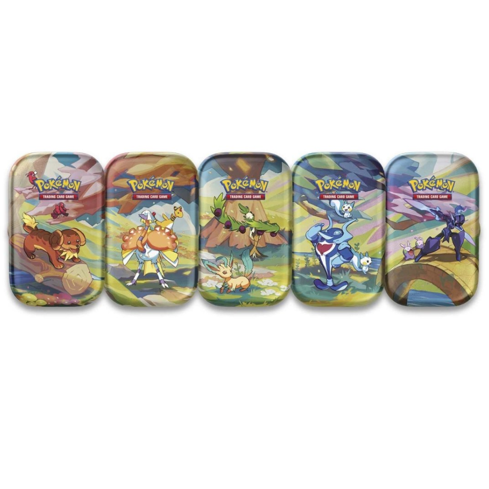 Expand your collection with this Pokémon Trading Card Game: Vibrant Paldea Mini Tin, perfectly sized for taking your favorite cards on the go! This fantastic tin is easy to open and features one of five fun Pokémon illustrations—and all five form a single image when you line them up!