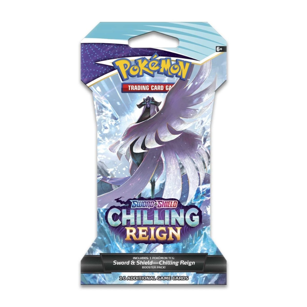 Seize the advantage with Pokémon of the frozen lands, with the powerful Ice Rider Calyrex VMAX and Shadow Rider Calyrex VMAX—plus the Galarian forms of Articuno, Zapdos, and Moltres! Phantom hauntings, howling blizzards, and wild battles—expand the realms of your Pokémon strategy with new powers and new possibilities. Press on despite ghostly opposition, and claim total victory in the land of spectral snow with the Pokémon TCG: Sword & Shield—Chilling Reign expansion!