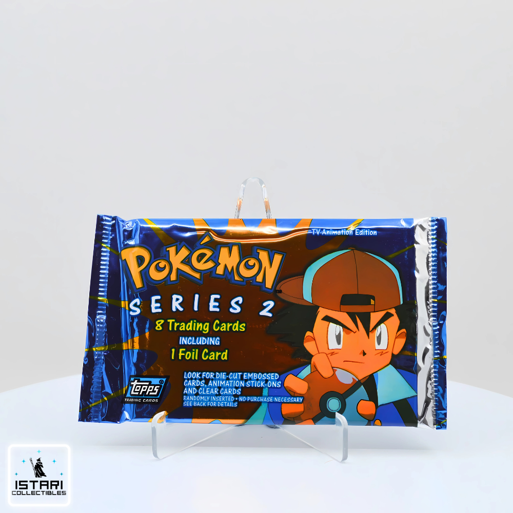 Elevate your Pokémon collection with this Topps Series 2 full art set. Released in 1999, this was the second set of the Topps Trading Card Game series. This was a follow-up to the original Topps Pokémon Series 1, continuing the collection of Pokémon cards based on the first season of the Pokémon anime. The packs came in either 5 or 8 cards with a guaranteed holo foil - This being the 8 card pack art set. As well as the standard non game-play cards featuring anime Pokémon from the Kanto region, collectors could also be lucky and pull a rare puzzle card, sticker card or a rare holo foil. A good chance to get the full art set from a nostalgic period in Pokémon history.