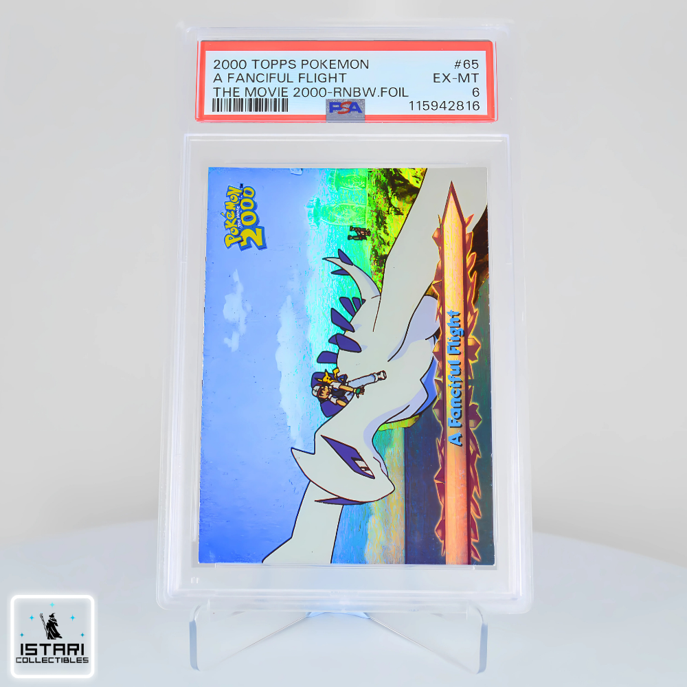 A must-have for collectors of Topps Movie cards or anyone seeking a tangible piece of late-90s Pokémon nostalgia, the “A Fanciful Flight” PSA 6 embodies both the artistry and cultural significance of Pokémon’s first big-screen adventure.