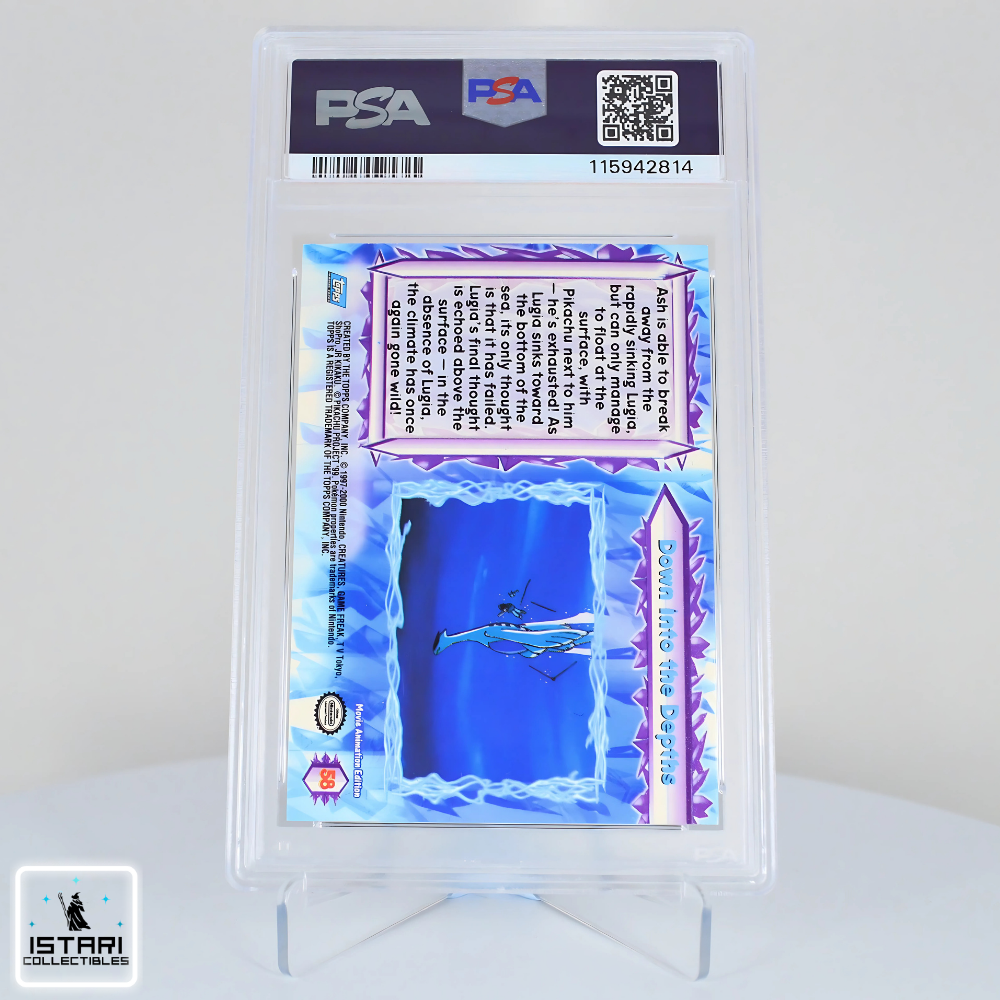 A must-have for Topps Movie card enthusiasts, the “Down Into the Depths” Rainbow Foil PSA 6 preserves the artistry, drama, and nostalgia of Pokémon’s late-90s cinematic debut, making it a standout addition to any vintage collection.
