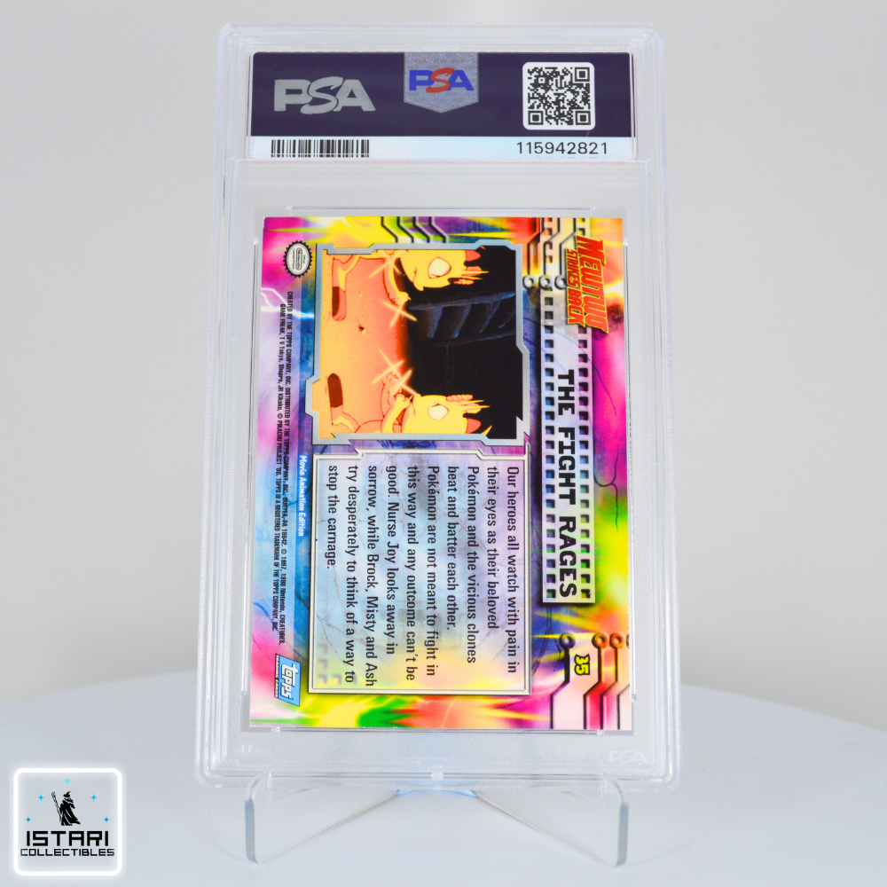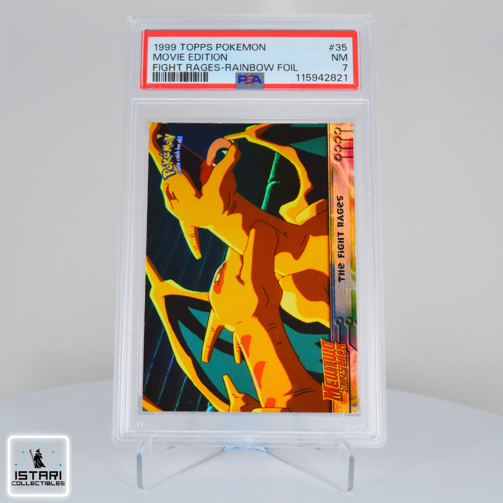 Graded PSA 7 (Near Mint), this copy retains excellent visual appeal while offering collectors an accessible entry point into graded vintage Pokémon memorabilia. With Topps Movie cards becoming increasingly recognized for their nostalgic and historical significance, this Rainbow Foil “The Fight Rages” is a perfect addition for collectors seeking to own a tangible slice of late-90s Pokémon culture.