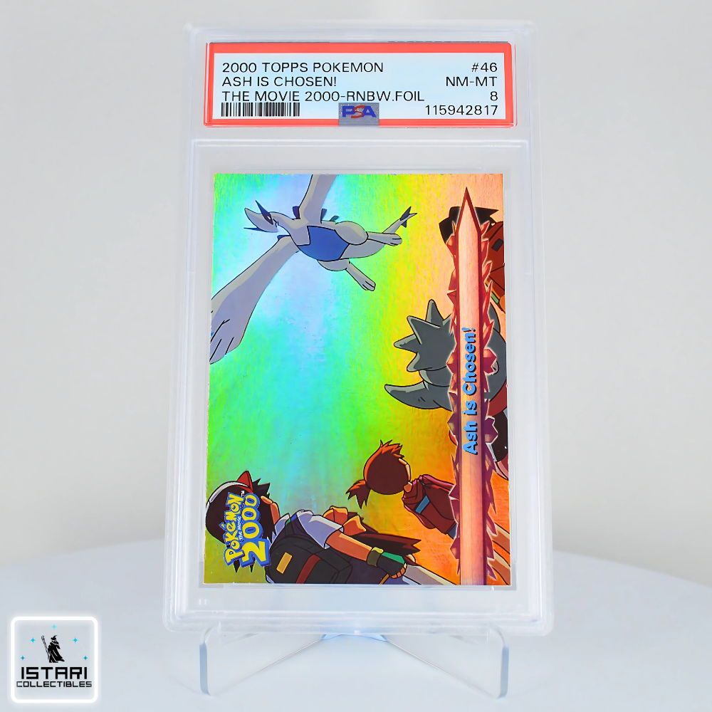 A must-have for collectors of Topps Movie cards, the “Ash is Chosen” Rainbow Foil PSA 8 embodies the nostalgia, artistry, and historical significance of Pokémon’s late-90s cinematic debut, making it a standout addition to any vintage collection.