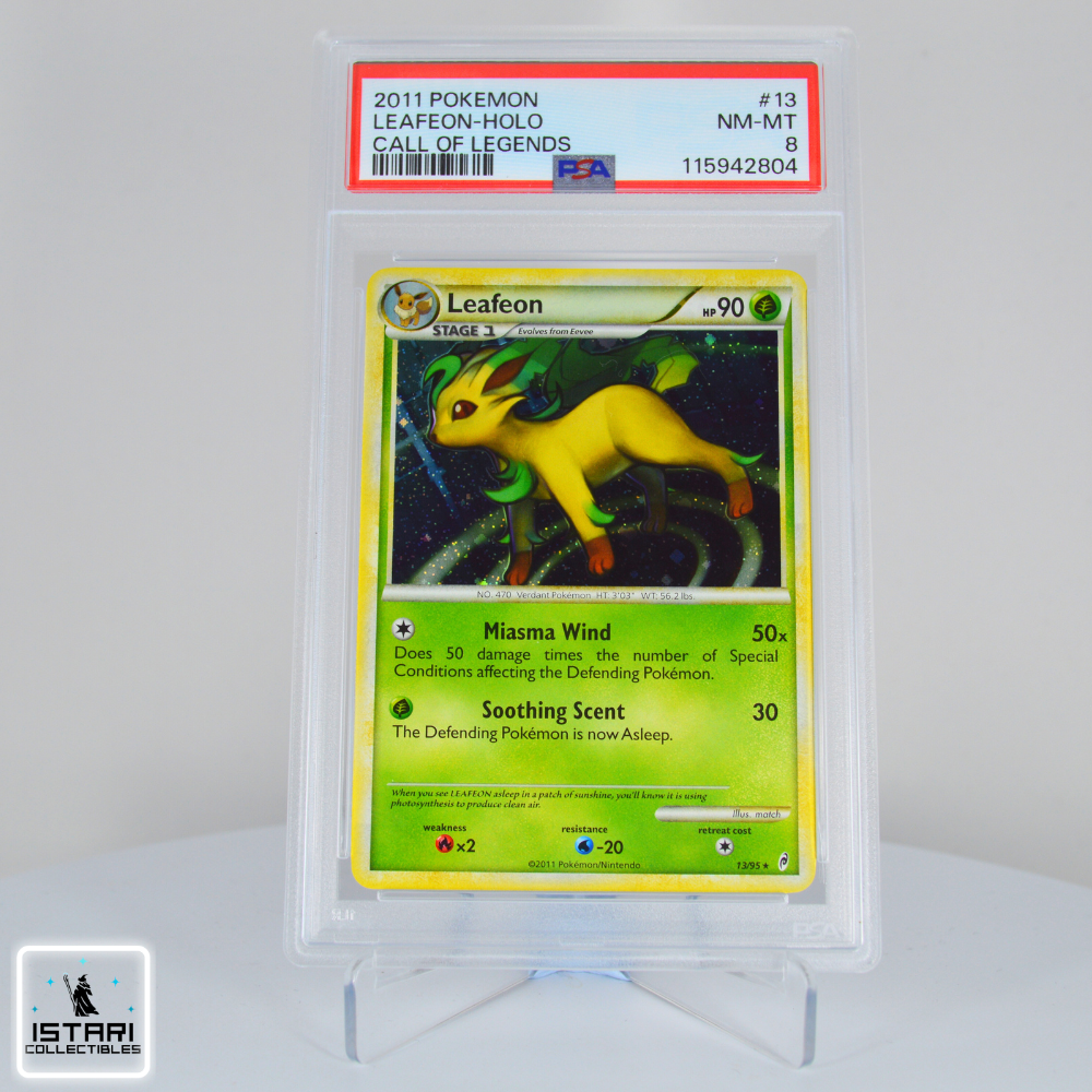 Graded PSA 8, this copy offers strong eye appeal at an accessible price point, making it an excellent addition for both Eeveelution collectors and fans of rare HGSS-era cards. With sealed Call of Legends product becoming increasingly scarce, graded singles like this Leafeon are a smart way to own a piece of one of the Pokémon TCG’s most underappreciated expansions.