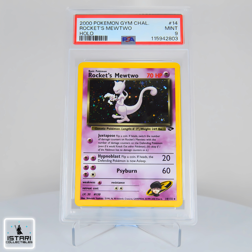 For fans of Legendary Pokémon, Team Rocket, and WOTC-era nostalgia, the Rocket’s Mewtwo Holo PSA 9 is a must-have centerpiece that embodies the darkness, power, and artistry of the Gym Challenge expansion.