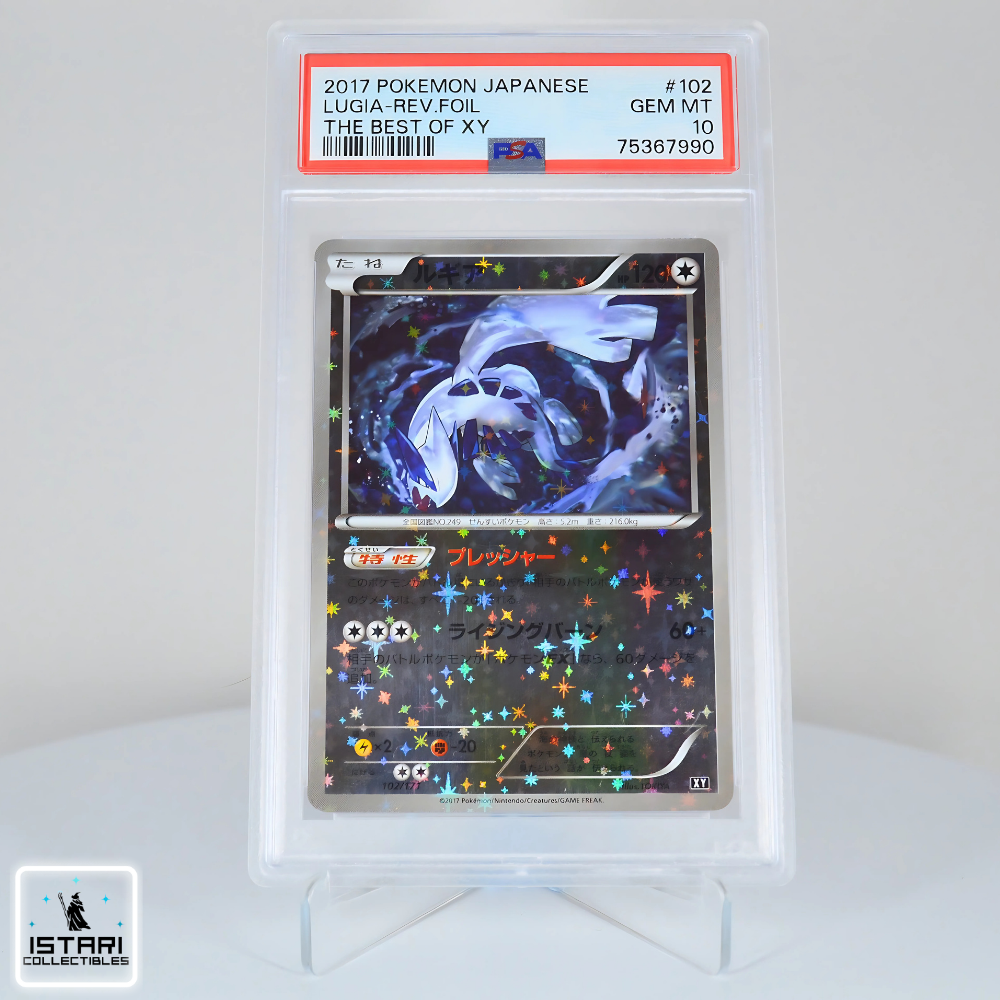 Elevate your Pokémon TCG collection with the Lugia Reverse Starlight Holofoil from the Best of XY Japanese promo set. Card number xx/xx, this unique reverse artwork features the legendary "Guardian of the Sea" Lugia in a glittering starlight holofoil finish. The Best of XY promo set was released in Japan on April 21, 2017 to provide reprints of the most popular cards from the XY and XY BREAK era - all regular cards included within the subset also had Reverse Starlight Foil Holo print. Graded in a perfect gem mint PSA 10 ensures this collectibles is of the highest quality and will shine bright in any collection.